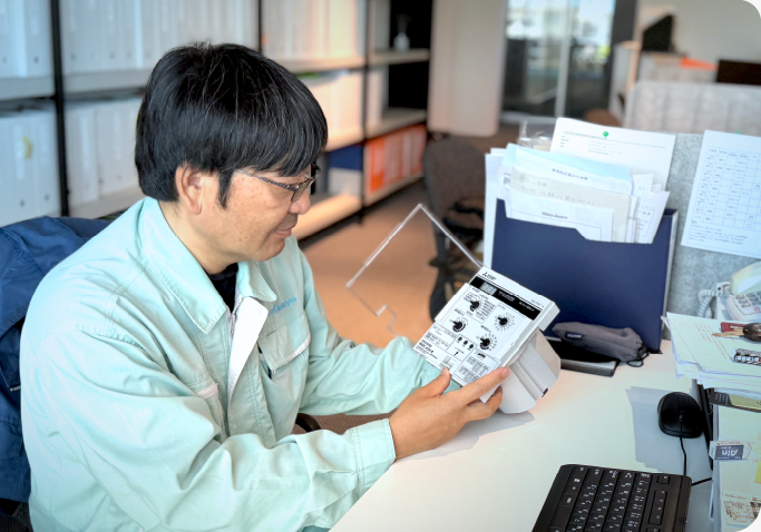 変電設備の点検は私たちにとっては日常業務ですが、取引先企業の、施設管理に携わる担当者にとっては年に1回の極めて重要な業務。その重要性を常に意識し、初心を忘れずに業務に向き合うことをモットーとしています。